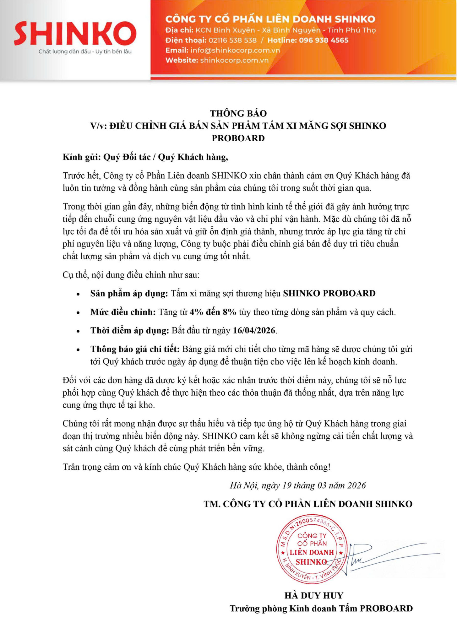 Trong thời gian gần đây, những biến động từ tình hình kinh tế thế giới đã gây ảnh hưởng trực tiếp đến chuỗi cung ứng nguyên vật liệu đầu vào và chi phí vận hành. Mặc dù chúng tôi đã nỗ lực tối đa để tối ưu hóa sản xuất và giữ ổn định giá thành, nhưng trước áp lực gia tăng từ chi phí nguyên liệu và năng lượng, Công ty buộc phải điều chỉnh giá bán để duy trì tiêu chuẩn chất lượng sản phẩm và dịch vụ cung ứng tốt nhất.
