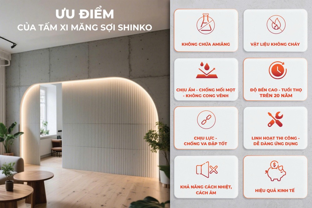 Nhờ vậy, Tấm Xi Măng Sợi SHINKO vừa an toàn, vừa cho khả năng ứng dụng tối đa: Đạt độ bền khi uốn, chịu lực, chịu ẩm vượt trội, thích hợp cho các công trình hiện đại, đáp ứng được tiêu chuẩn của các thị trường khó tính nhất trên thế giới. Đặc biệt, Tấm Xi Măng Sợi SHINKO là vật liệu không cháy, đã được kiểm nghiệm khắt khe và cấp giấy chứng nhận của Viện Vật liệu xây dựng – Bộ xây dựng. Đây là yếu tố then chốt giúp sản phẩm đạt yêu cầu về độ bền và đảm bảo an toàn trong các công trình xây dựng hiện đại.